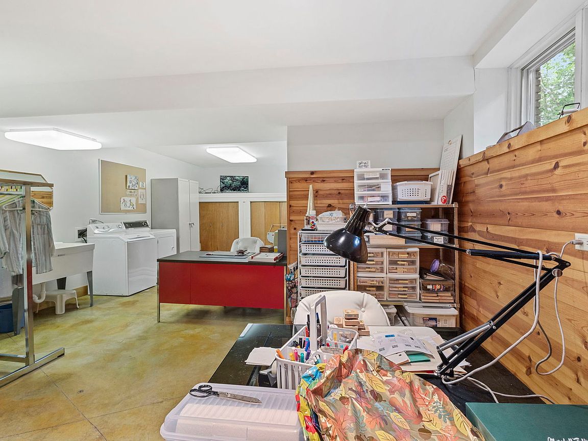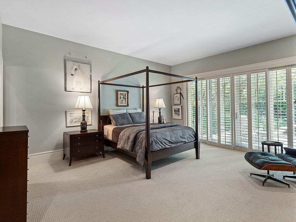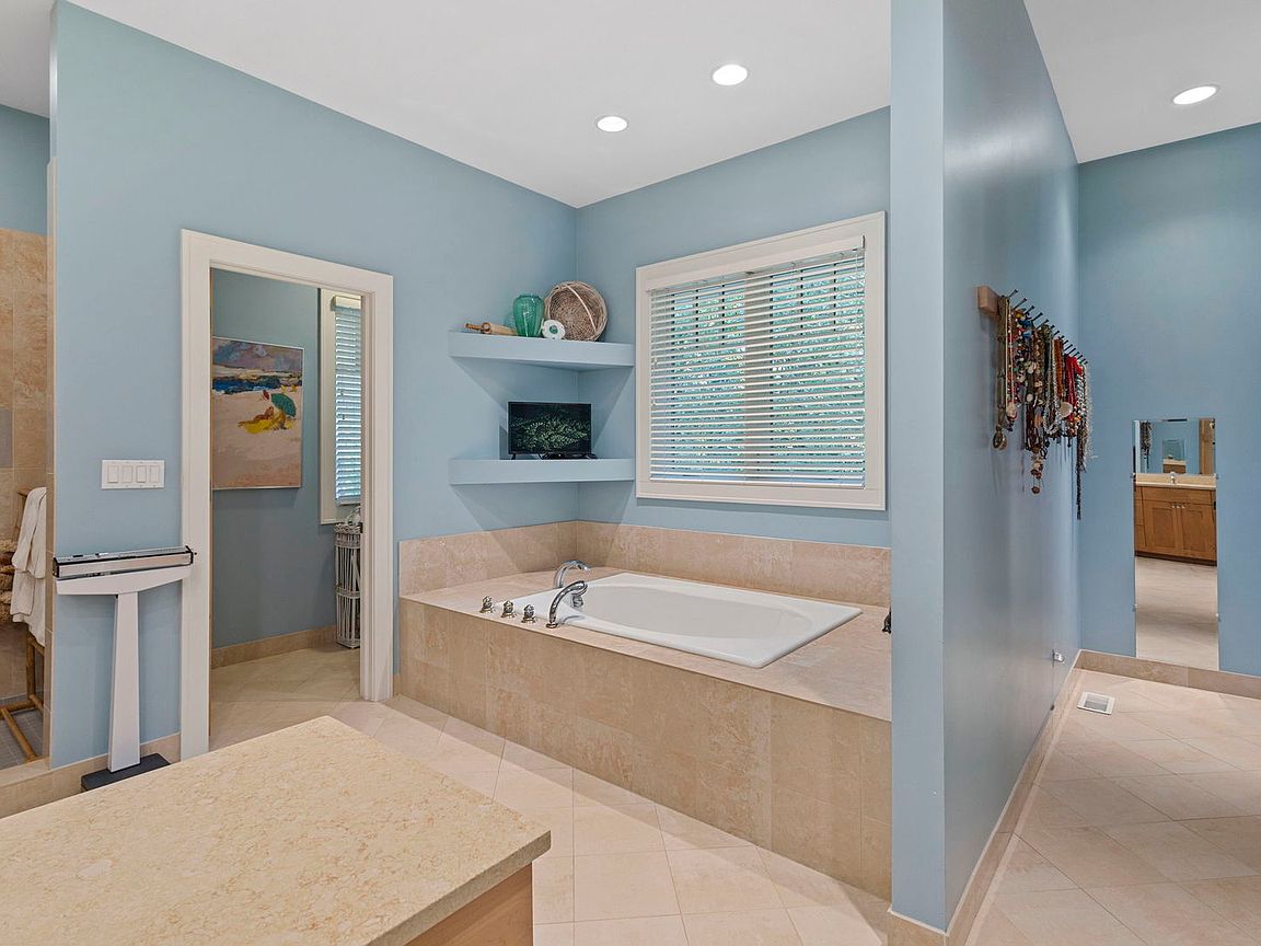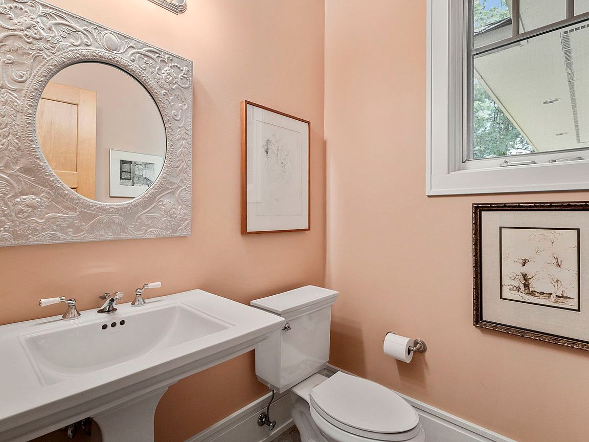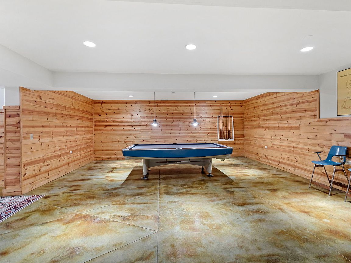 This stunning home is a showcase of Frank Lloyd Wright-inspired Prairie style, thoughtfully designed to harmonize with its natural surroundings. Situated on a quiet cul-de-sac, the home’s free-flowing layout was intentionally crafted for comfortable and connected family living.