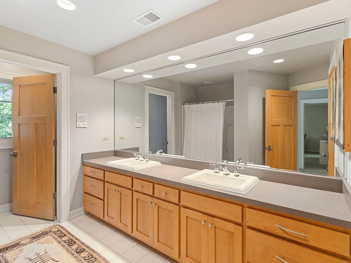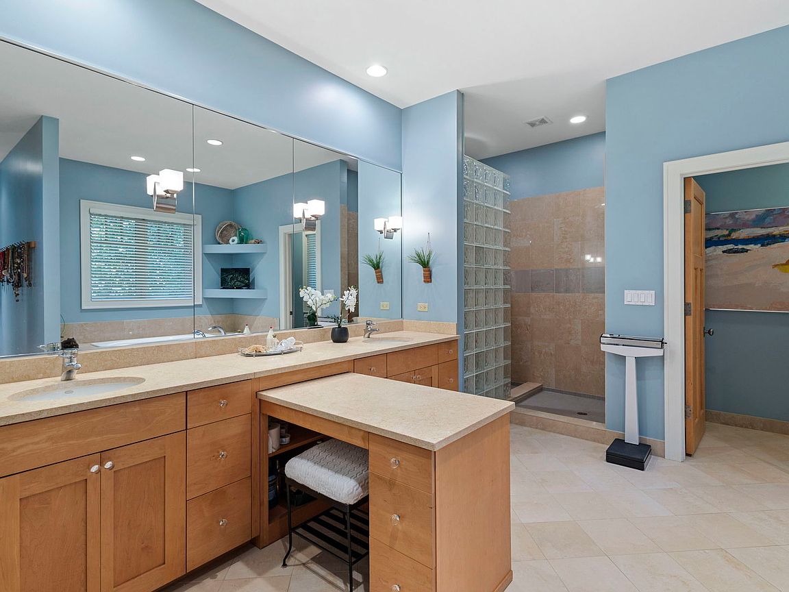 The catwalk overlooking the great room joins the third bedroom with en suite bath. The lower level has radiant floor heat, ample space for recreational activities, additional full bath, and access to three car garage. Conveniently located near shopping, dining, major expressways, and the vibrant Burr Ridge Village Center, this home masterfully combines architectural beauty, thoughtful design, and everyday functionality.