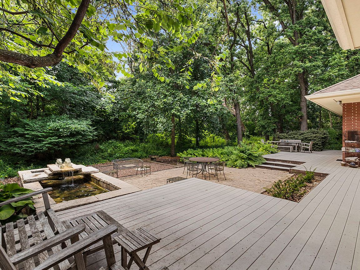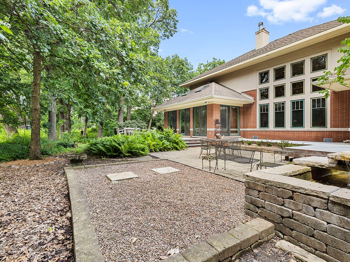 This stunning home is a showcase of Frank Lloyd Wright-inspired Prairie style, thoughtfully designed to harmonize with its natural surroundings. Situated on a quiet cul-de-sac, the home’s free-flowing layout was intentionally crafted for comfortable and connected family living. A striking stained glass front door welcomes you inside, where the architecture immediately captivates, drawing you inward and upward. The main level features beautiful hardwood floors, soaring 10-foot ceilings, and a functional floor plan designed for modern living. Highlights include a dedicated first-floor office, a cozy library, a spacious primary suite with an elegant bath, a well-appointed kitchen with an adjoining eating area, and a spectacular great room with 19-foot ceilings and a dramatic wall of windows that frame views of the lush backyard – seamlessly blending structure and landscape. The second level offers three generously sized bedrooms, each with large closets, a Jack and Jill bath, and a private en suite. A walk-up staircase leads to an unfinished upper level. The inviting lower level, complete with a two-sided fireplace, offers the perfect setting for extended family fun or entertaining guests. Kitchen has maple cabinetry, granite countertops, stainless steel appliances, wet bar with beverage fridge and walk in pantry. The office has double French doors. There is a cheery sunroom off the kitchen with skylights and access to the deck, brick paver patio, and tranquil waterfall. The catwalk overlooking the great room joins the third bedroom with en suite bath. The lower level has radiant floor heat, ample space for recreational activities, additional full bath, and access to three car garage. Conveniently located near shopping, dining, major expressways, and the vibrant Burr Ridge Village Center, this home masterfully combines architectural beauty, thoughtful design, and everyday functionality.